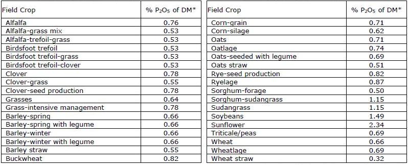 为了确定作物去除,通过干物质(DM)含量乘以DM的P含量的含量(磅)。